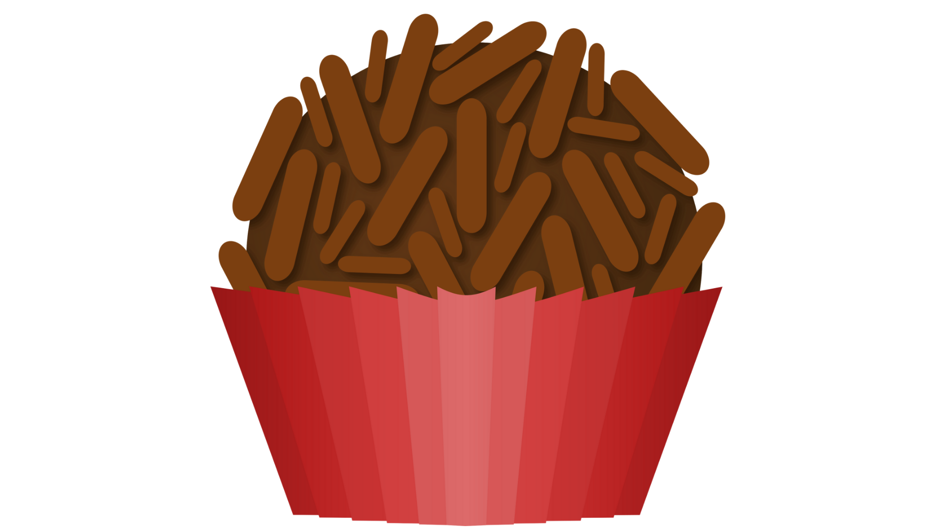 Dark chocolate brigadeiro rolled in milk chocolate sprinkles, finished with a strawberry chocolate topping